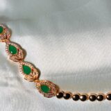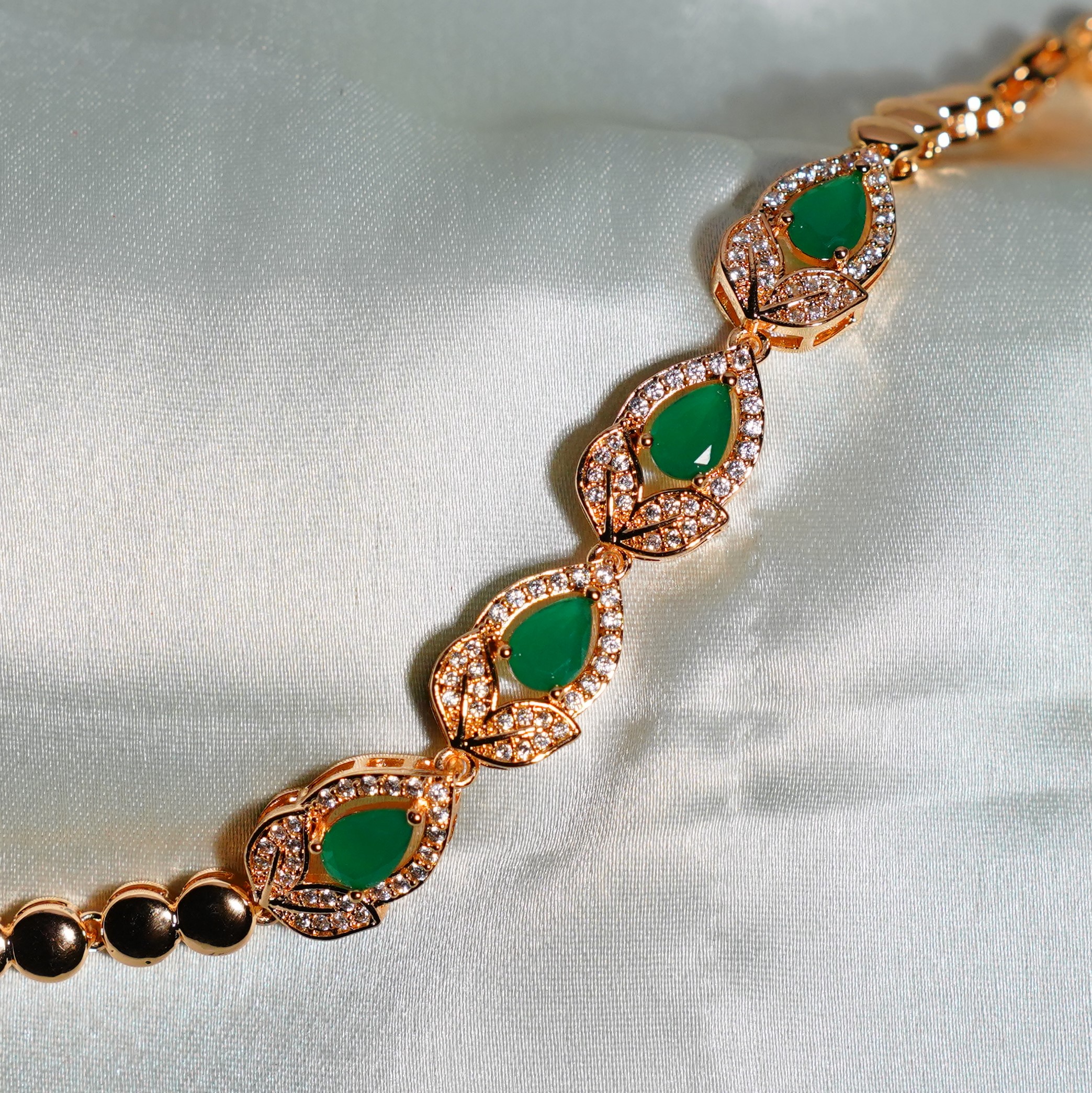 Beautiful Gold Plated Green Emerald Bracelet with Lined CZ Stones in Petal Shape with perfect finish and shine