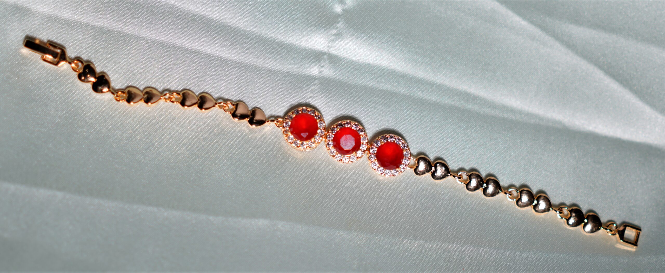 Beautiful Gold Plated Green Emerald Bracelet with Lined CZ Stones in Petal Shape with perfect finish and shine