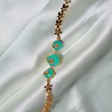 Beautiful Gold Plated Green Emerald Bracelet with Lined CZ Stones in Petal Shape with perfect finish and shine