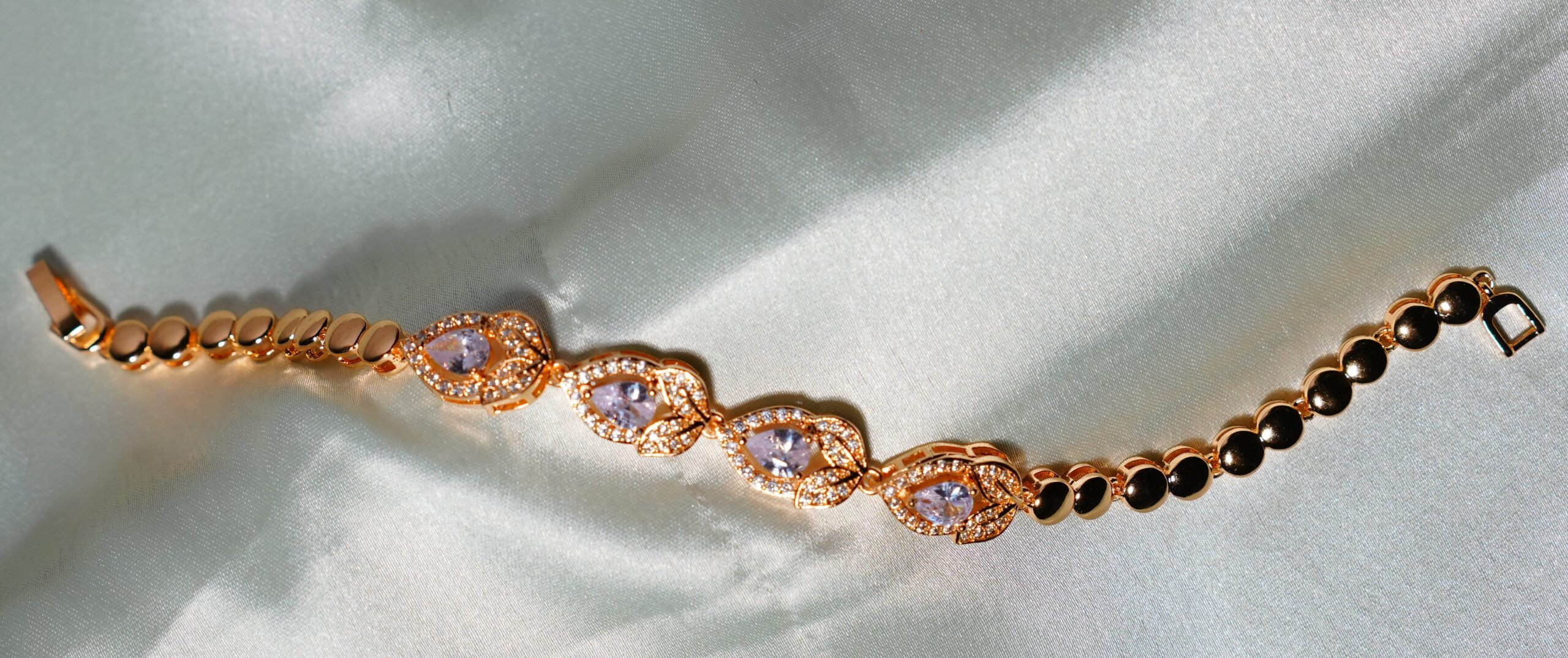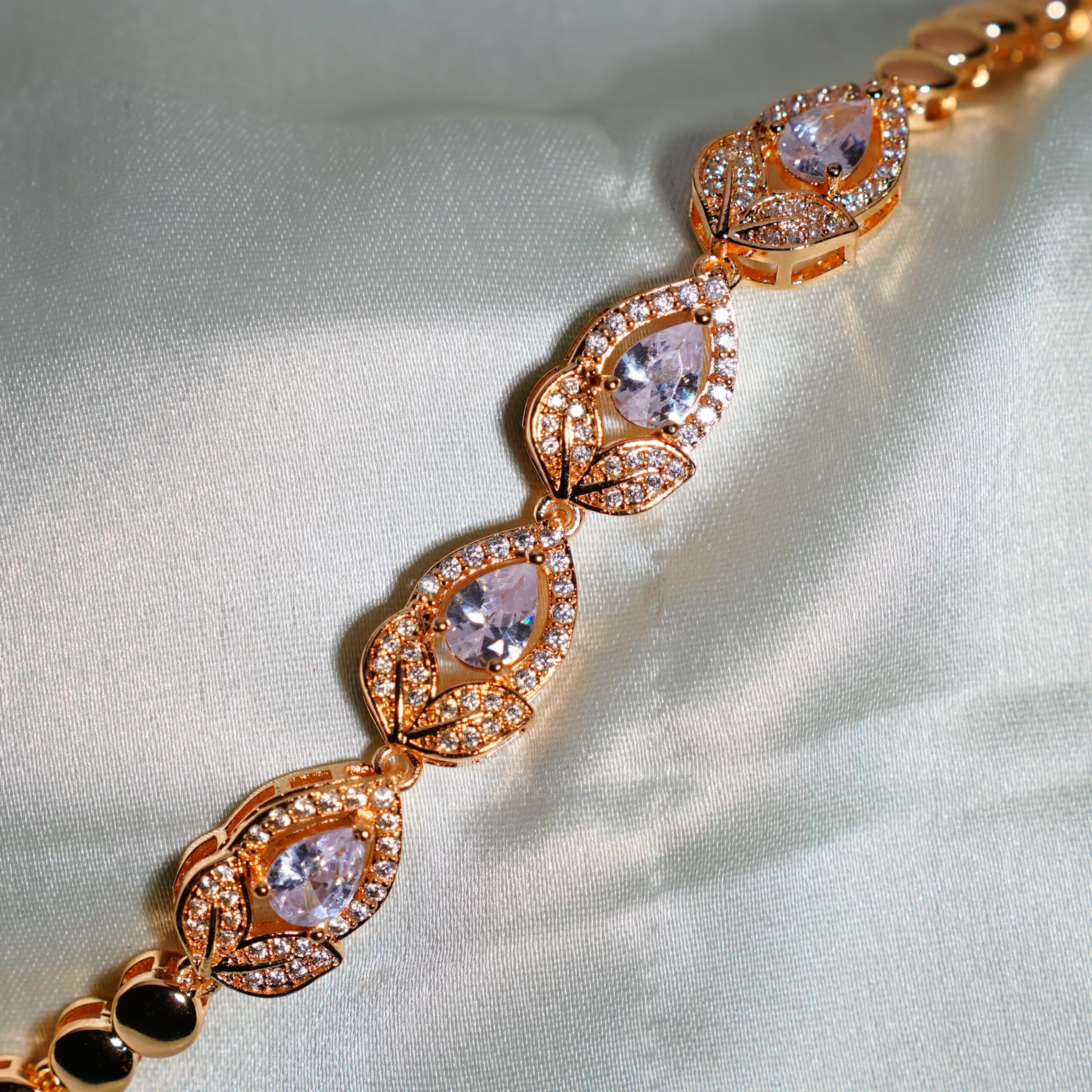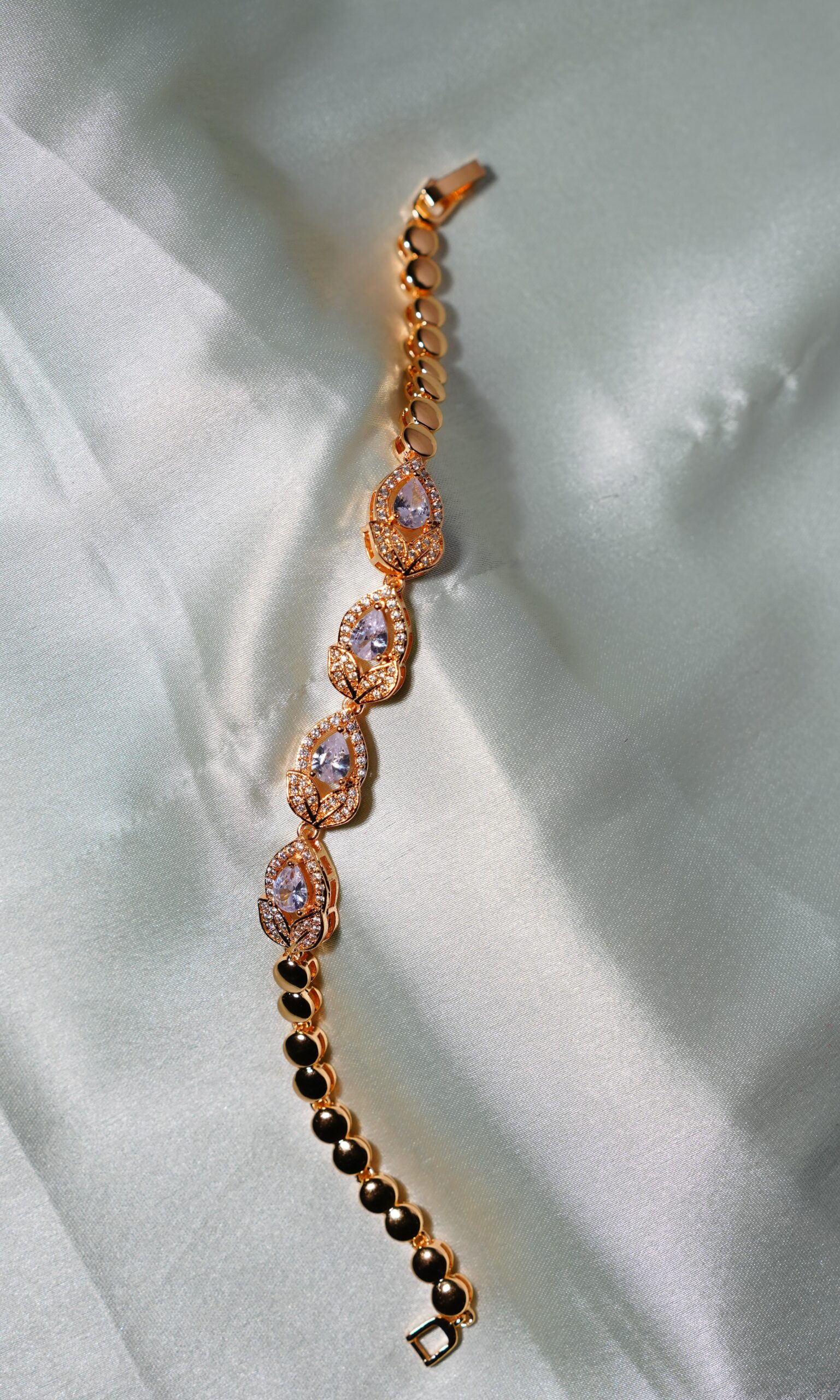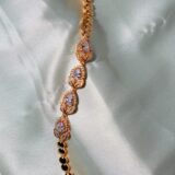 Beautiful Gold Plated White Diamond Bracelet with Lined CZ Stones in Petal Shape with perfect finish and shine