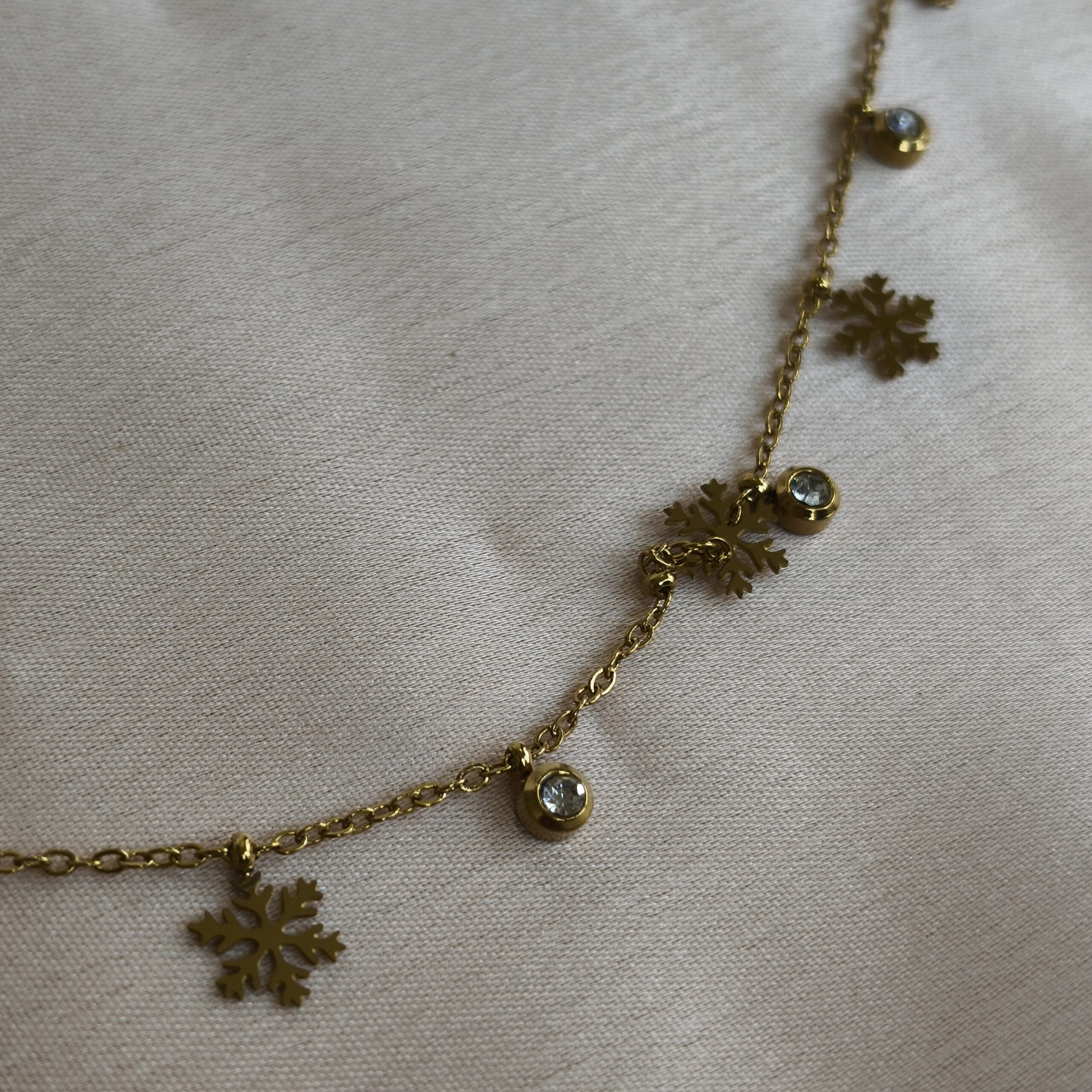 A delicate gold-tone chain adorned with sparkling Stars and charming snowflake accents, creating a light, elegant, and playful look.