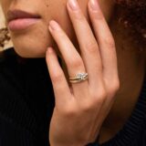 It takes two to start a perfect ring stack. Tame the fates with two good luck charms handcrafted in 14k solid gold and one set with pavé diamonds.