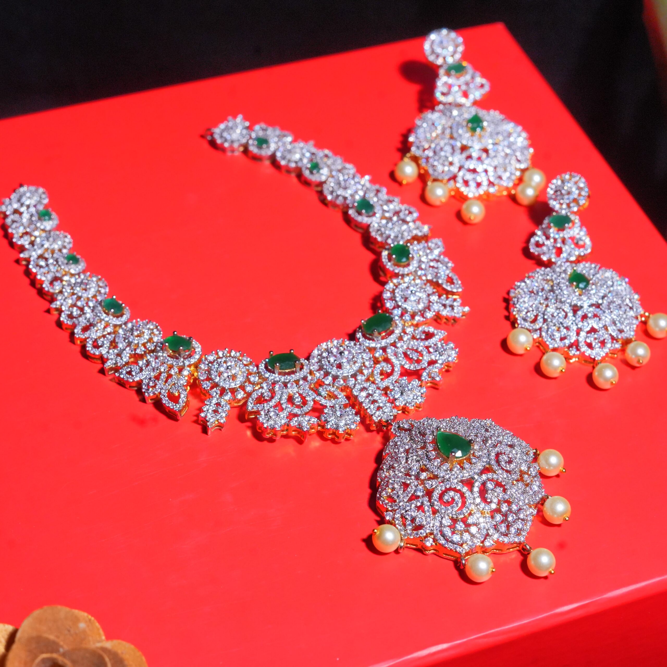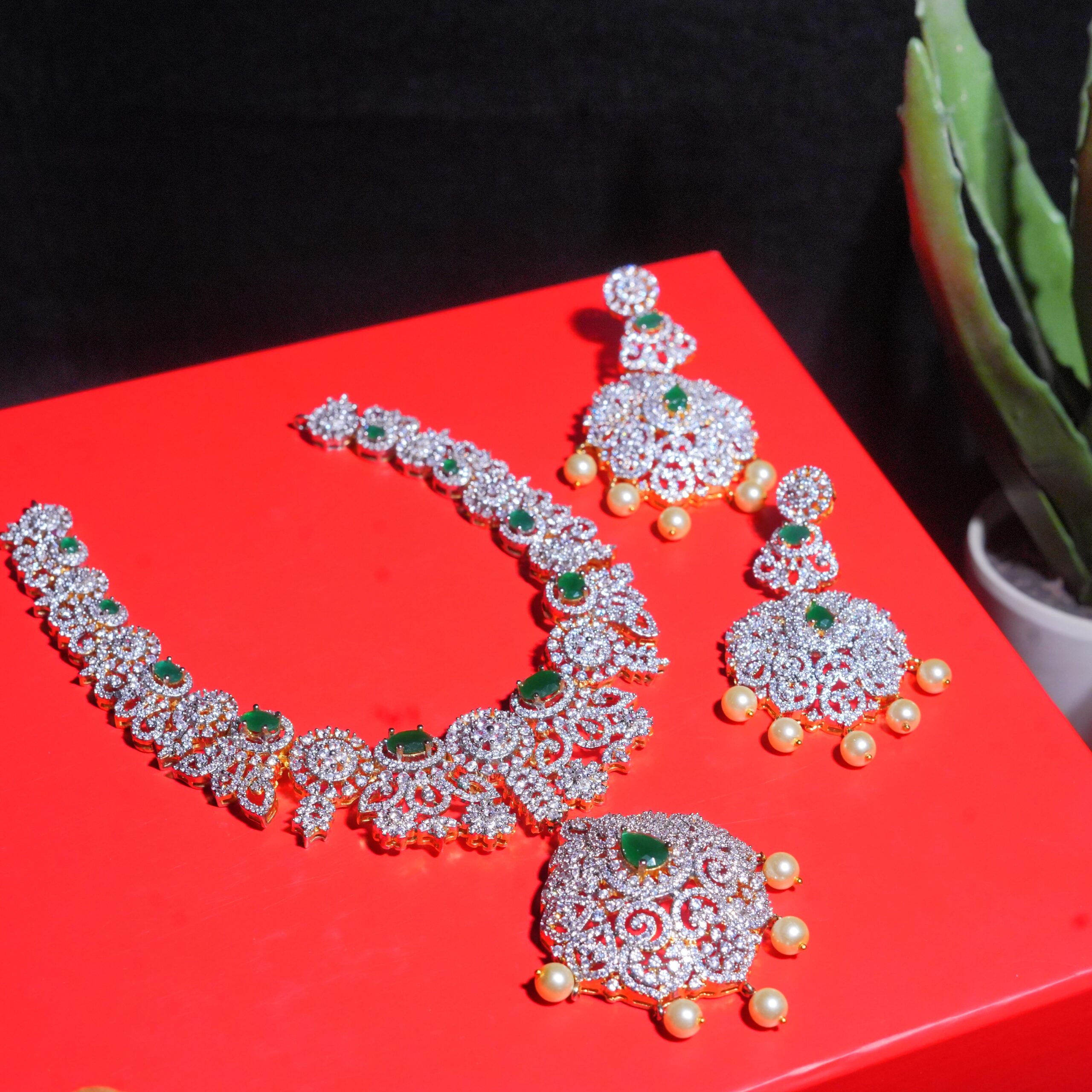 Be the first to review “Emerald Green CZ Necklace set with Earrings”