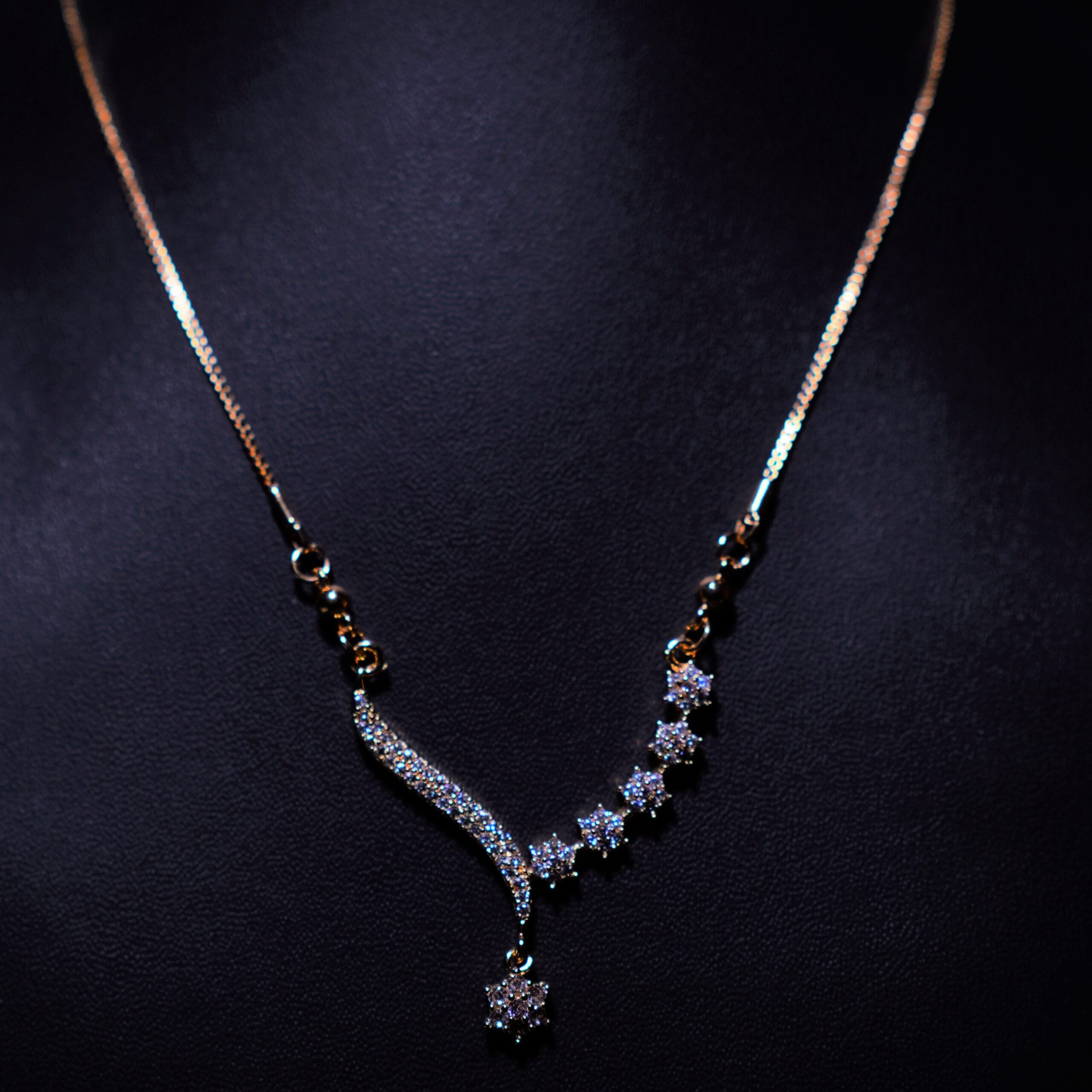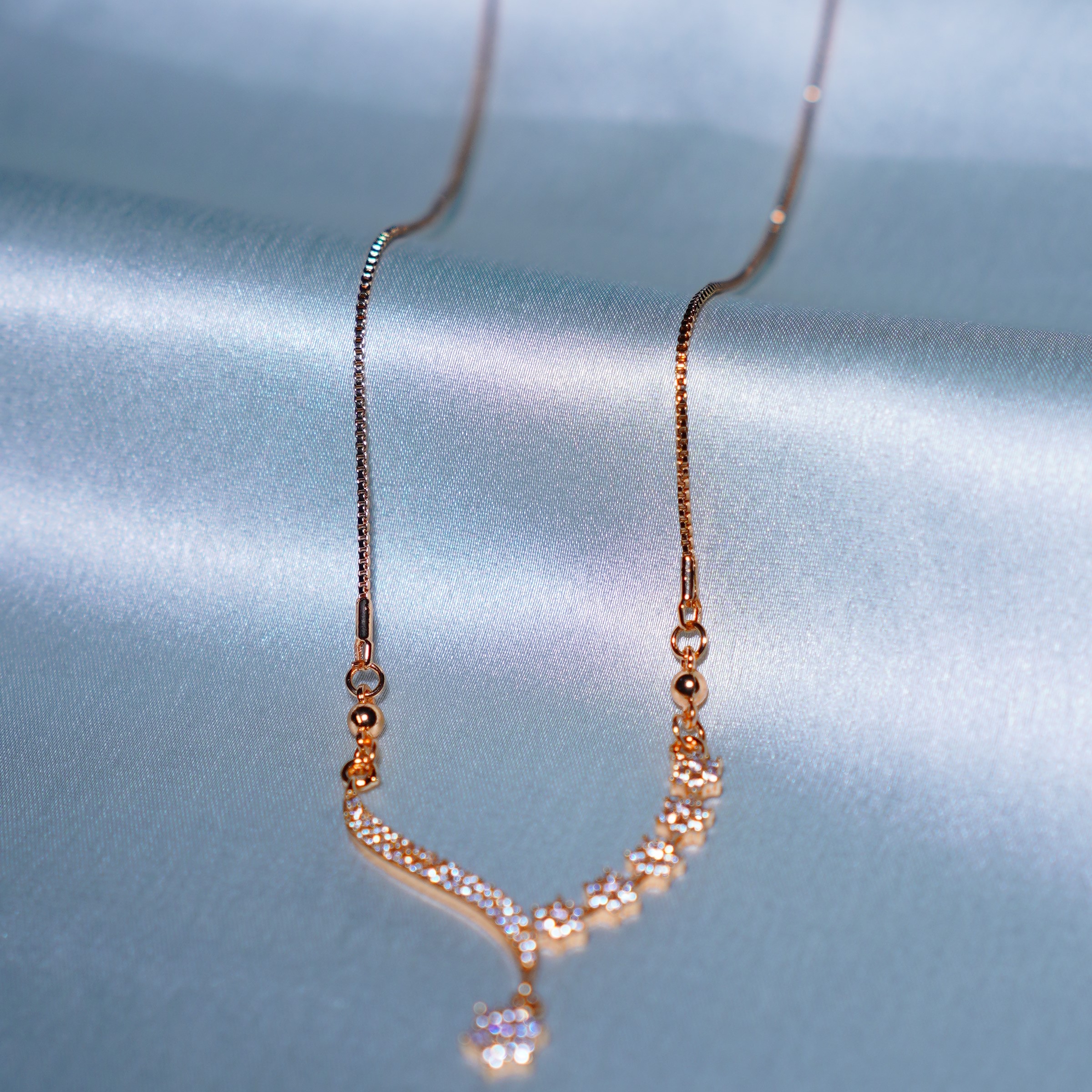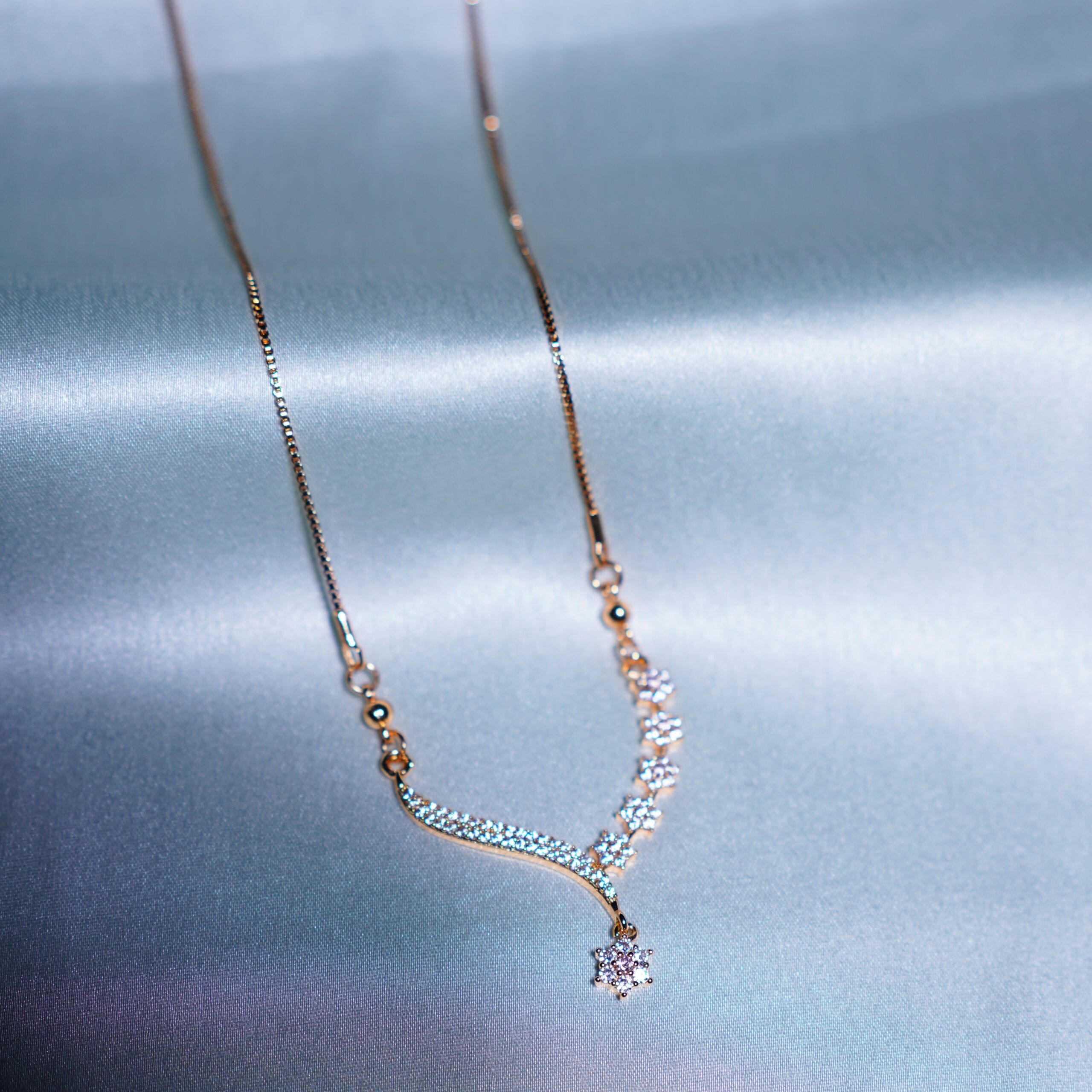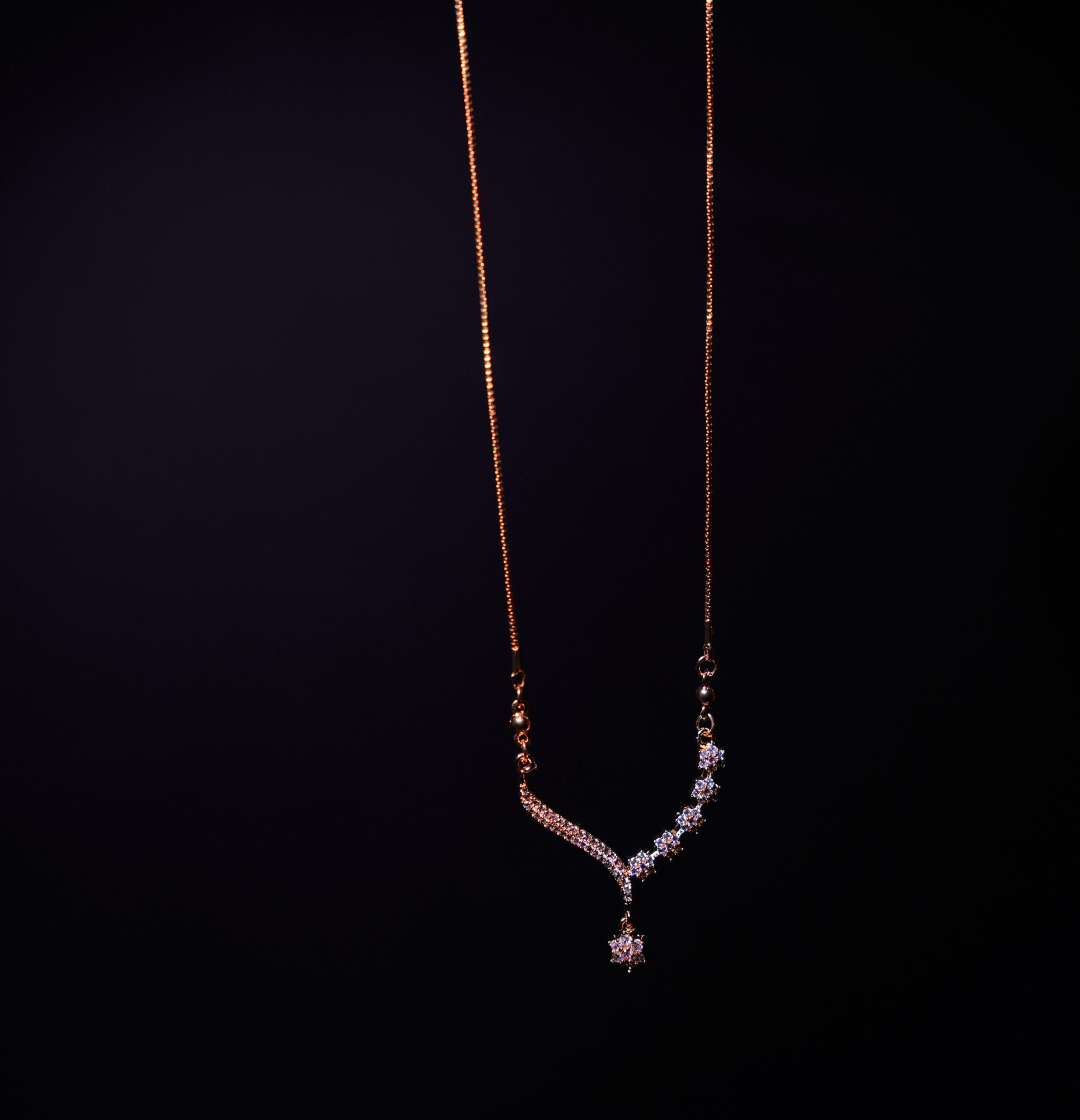 Mangalsutra : This 18K Gold-Plated minimal sparkling diamond accents on a long delicate chain. A chic and graceful option for everyday elegance.