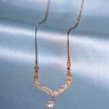 Be the first to review “Gold Plated V-shape CZ Pendant Necklace for Women And Girls”