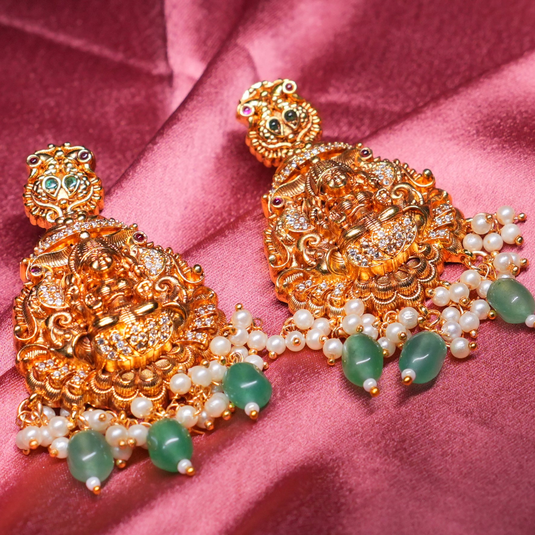 Be the first to review “Laxmi Motif Green Temple Necklace Set”