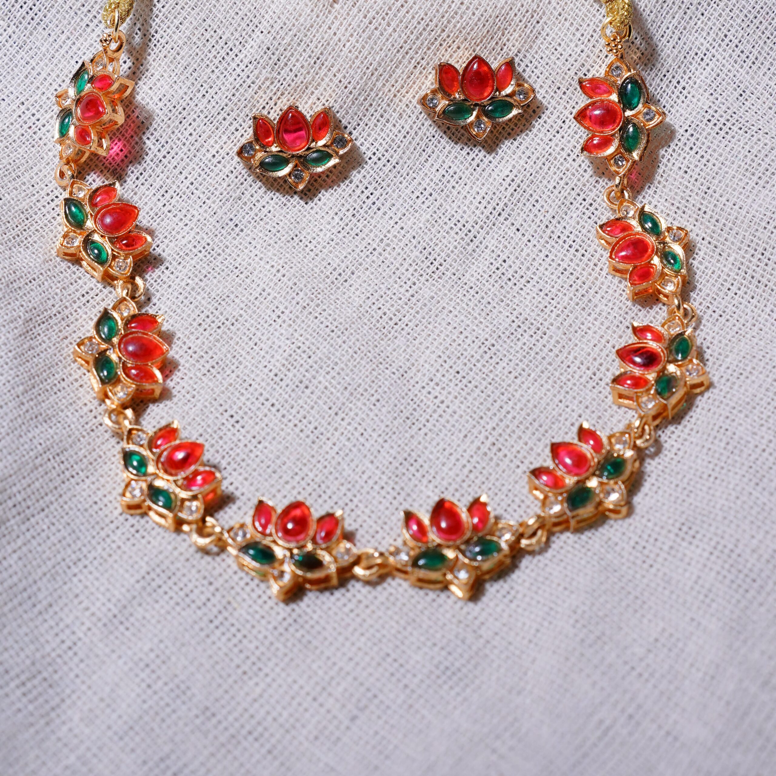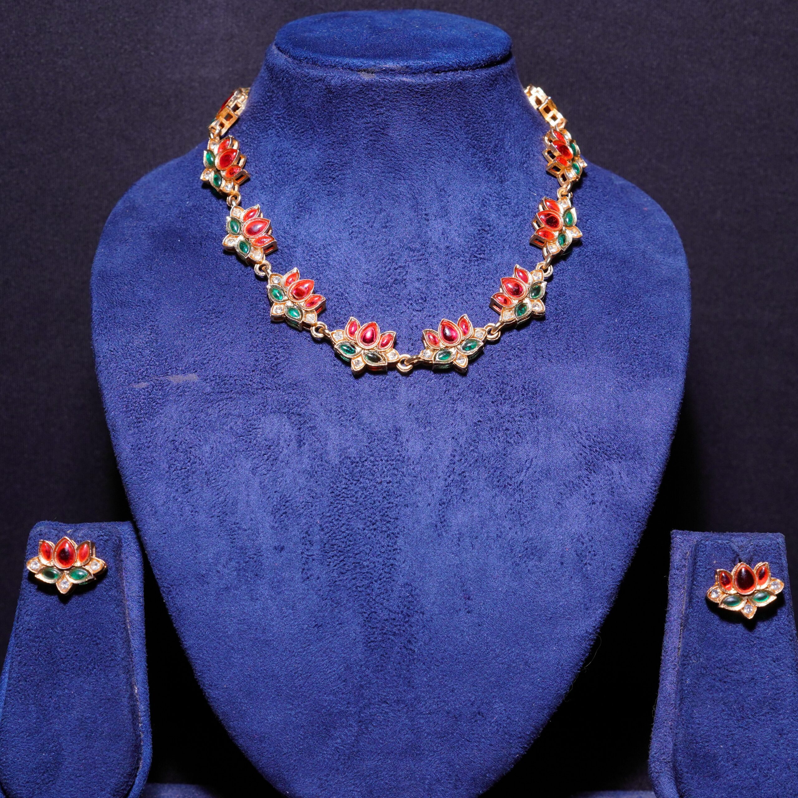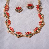 Be the first to review “Lotus Edge Necklace Set in Pink & Green Color”