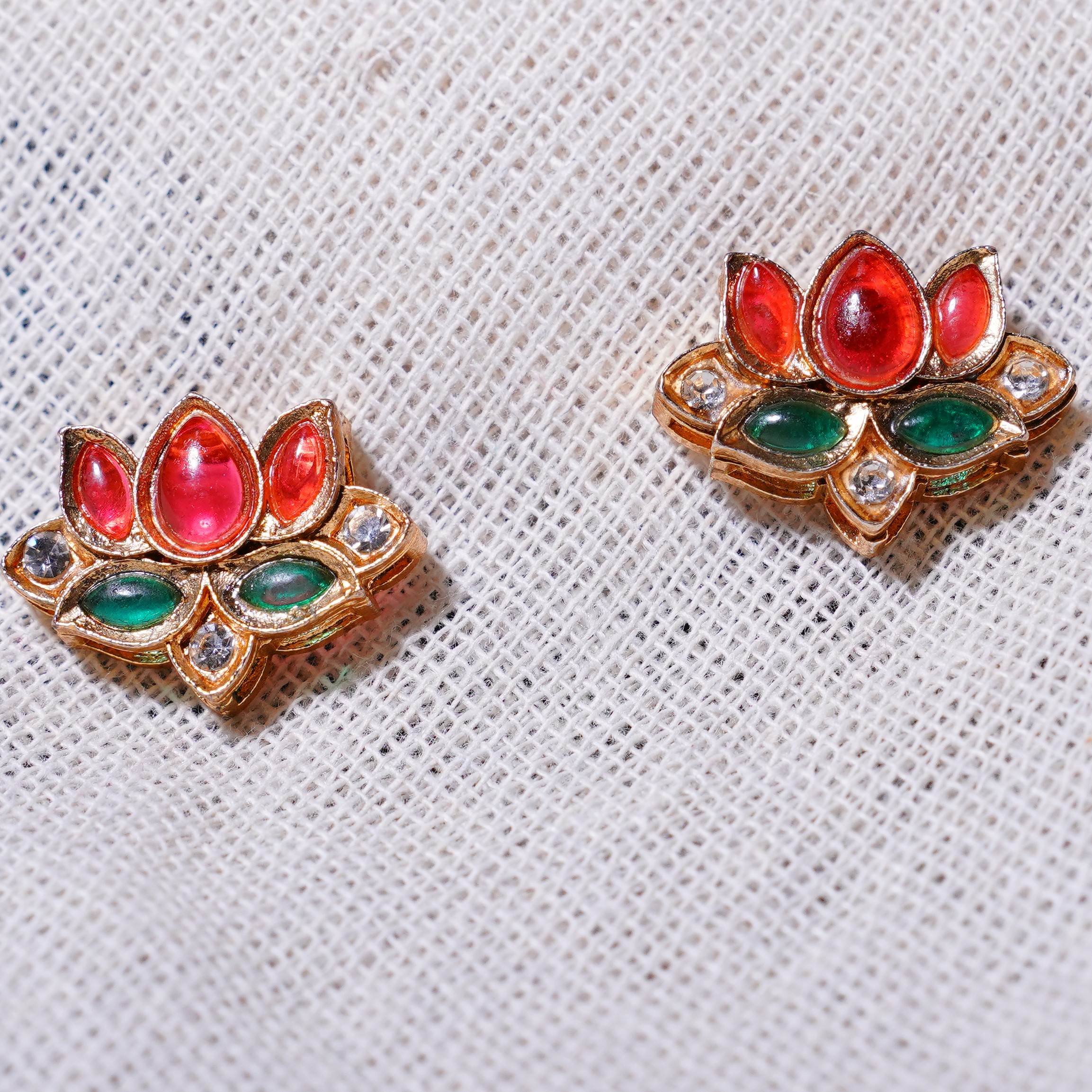 Beautiful Lotus Motifs aligned gracefully on chain comes with pair of Ear studs