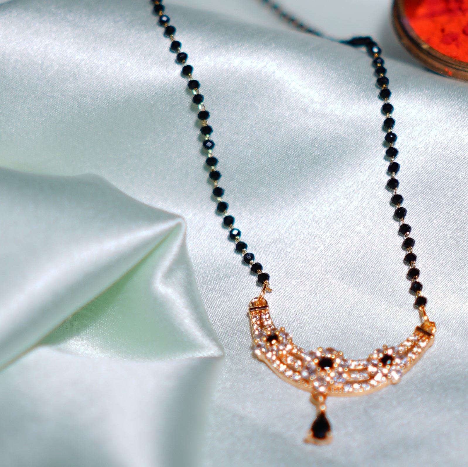 Mangalsutra : This Gold-Plated minimal mangalsutra features sparkling Black Beads with Beautifully designed locket. A chic and graceful option for everyday elegance.