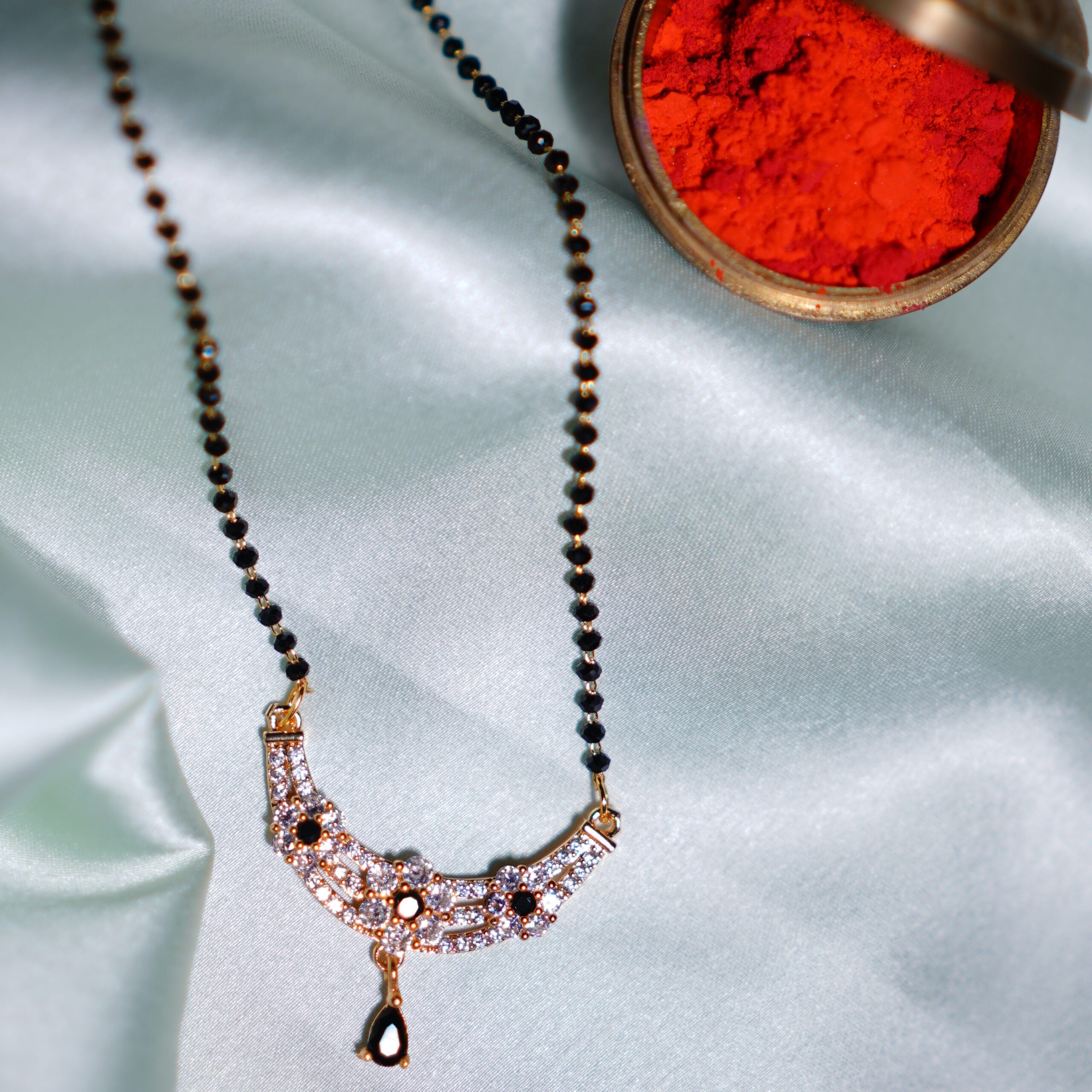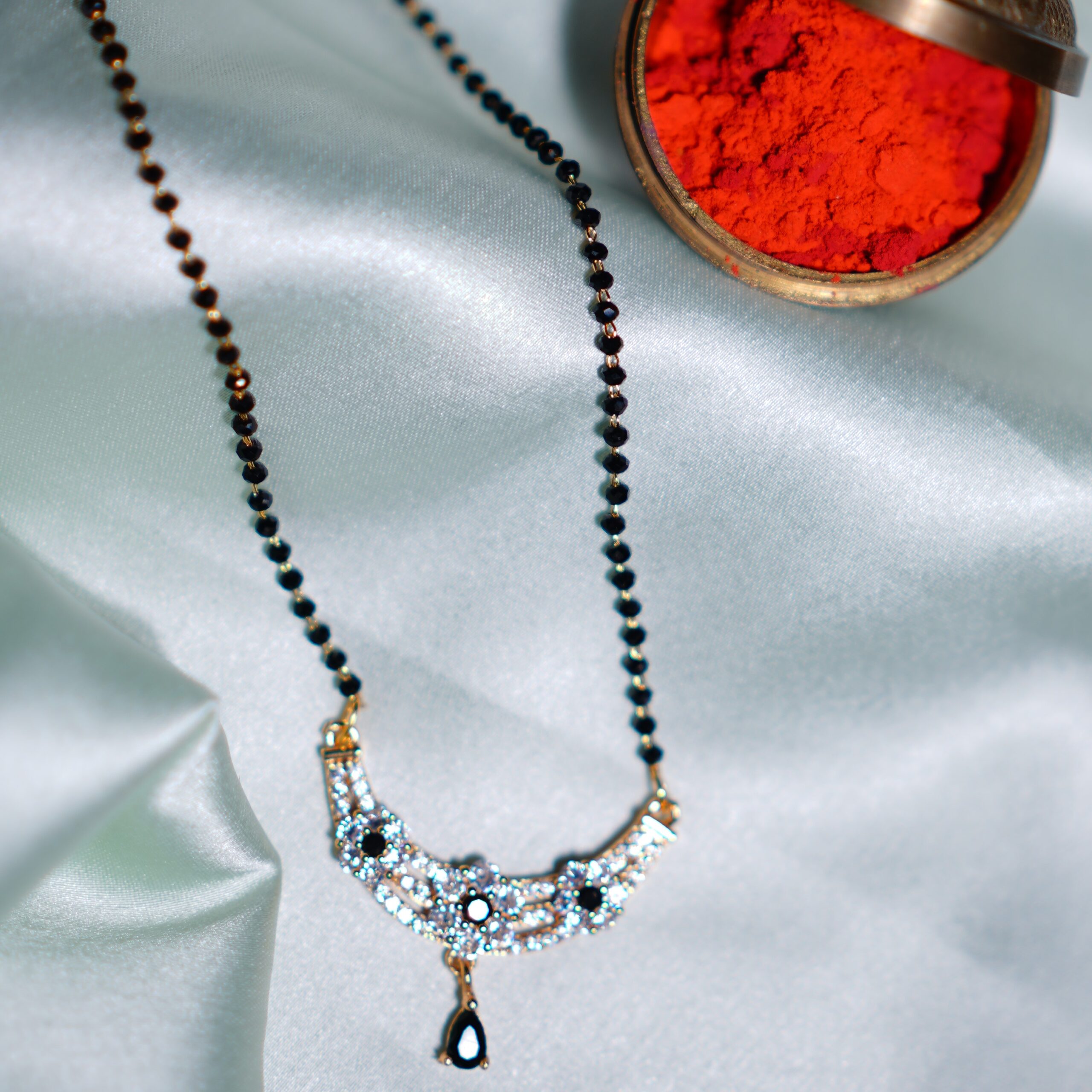 Be the first to review “Single Layered Black Beads Mangalsutra with CZ Bar Locket”