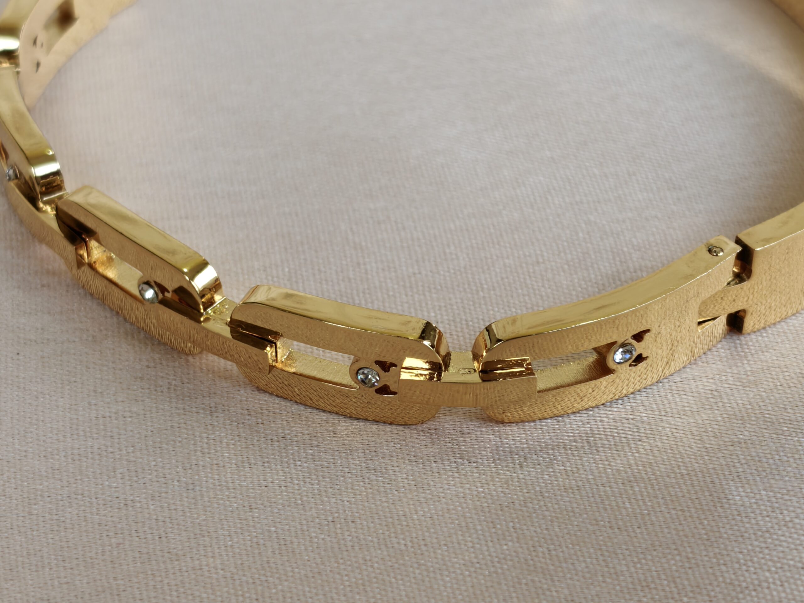 Ultra Stylish  gold-tone chain style CZ Studded Openable Bangle Bracelet. Free Size Elegant and  playful look.
