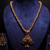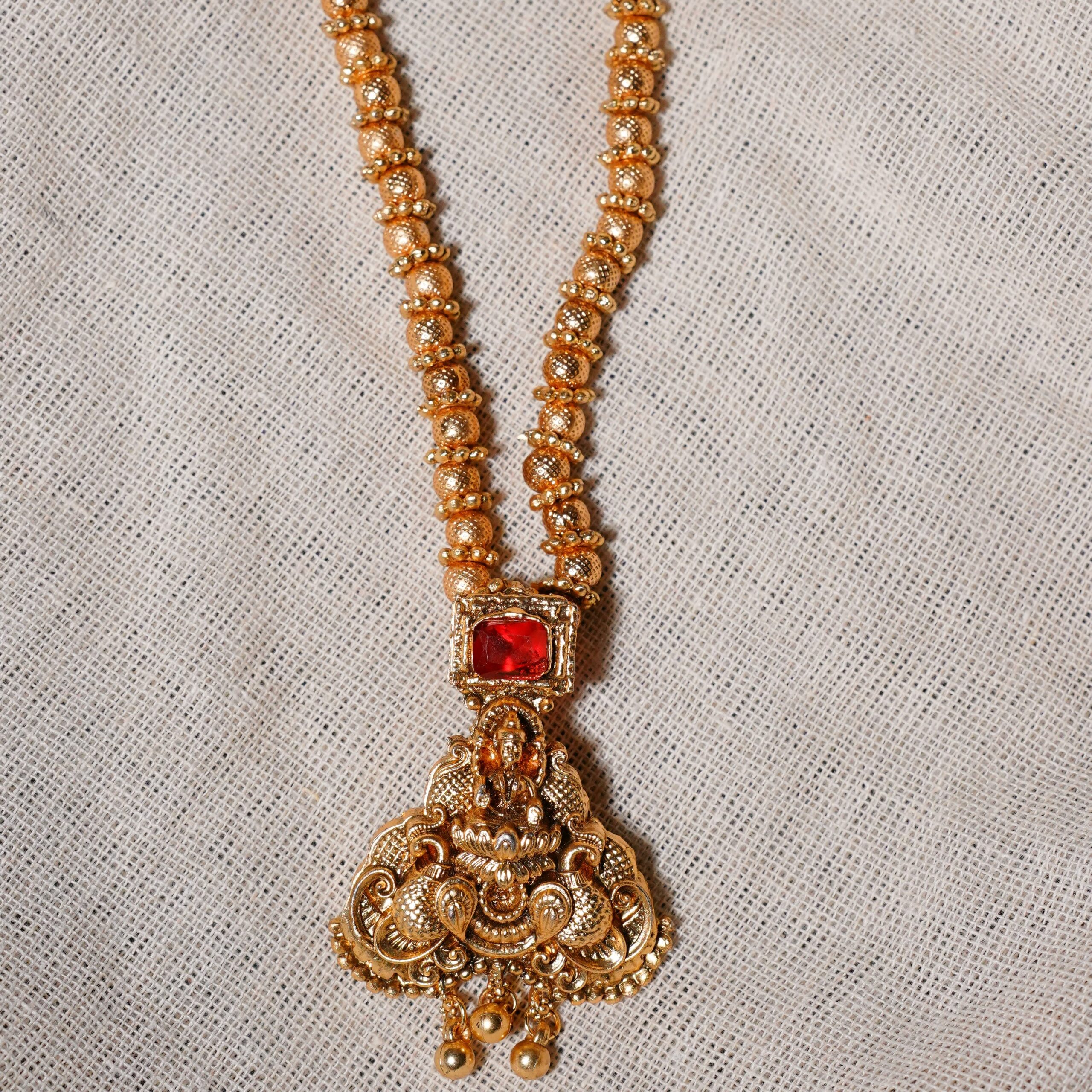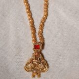 Textured gold beads with Deity motif Pendant create a rich traditional and ceremonial look suitable for festive occasions parties etc., for premium Appeal