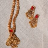Be the first to review “Temple Style Gold Laxmi Pendant Necklace Set with Earrings”
