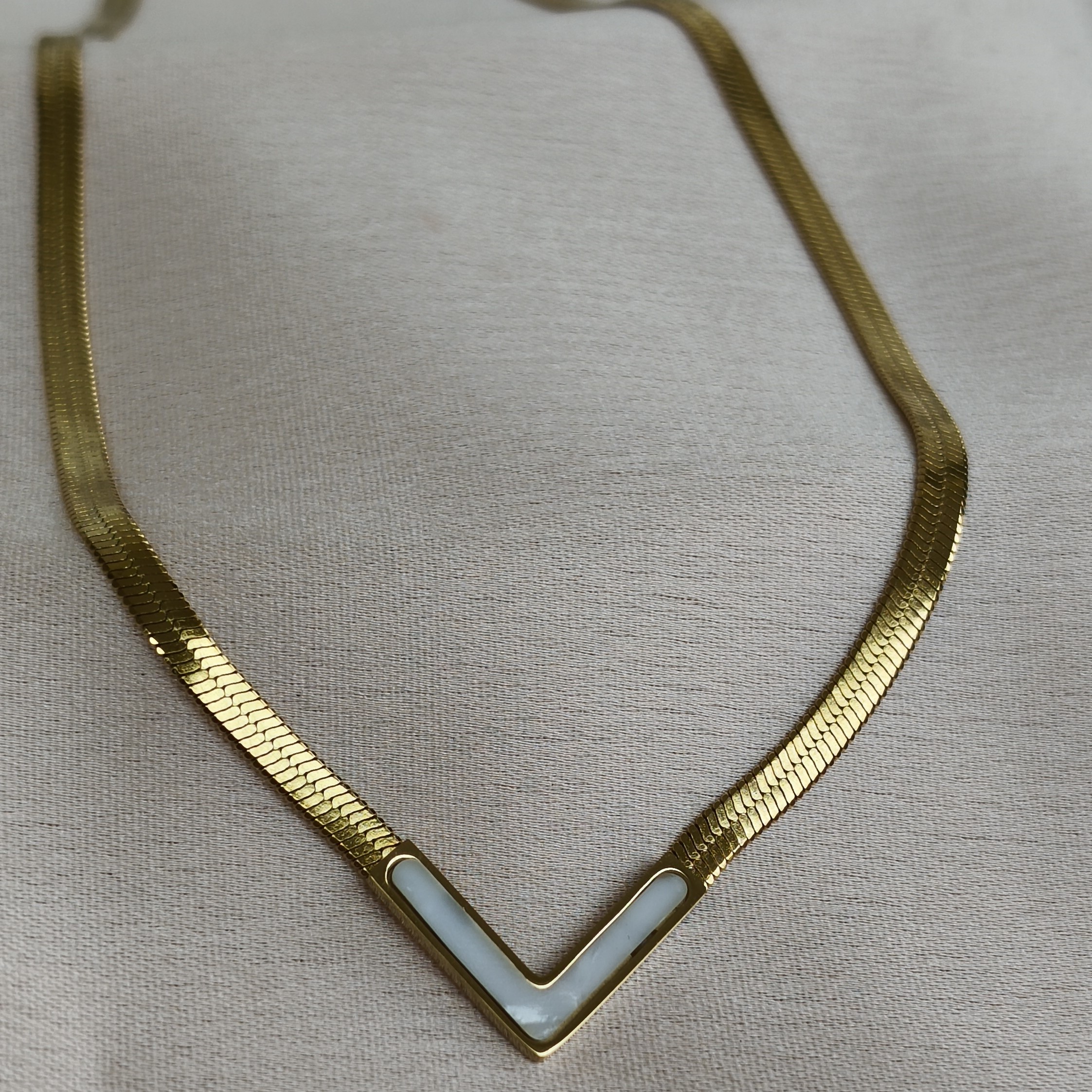 Be the first to review “White V-Shaped Gold Plated Necklace Chain”